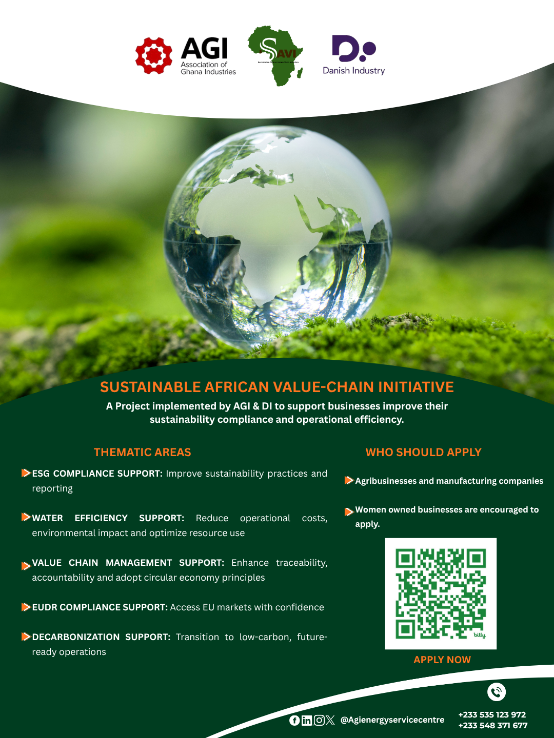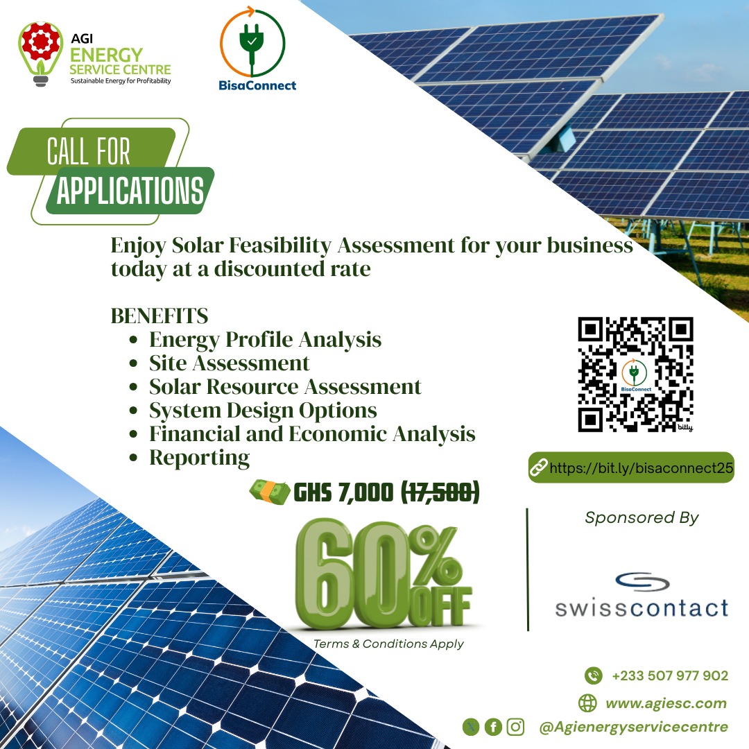 The importance of renewable energy and energy efficiency in reducing energy costs for businesses is well-known and documented. However, its adoption remains low in Ghana due to uncertainties surrounding the capability of local renewable energy (RE) and energy efficiency (EE) service providers, avoidance of first-mover risks and lack of adequate financing for projects. With Ghana’s objective to achieve 10% renewable energy component in the national energy mix by 2030, there is the need to make renewable energy and energy efficiency solutions readily available and accessible to industrial and commercial users. The Association of Ghana Industries Energy Service Centre (AGI-ESC) was therefore set up in September 2019 to be a one-stop centre for renewable energy and energy efficiency consultancy services, especially relating to the adoption of RE/EE among AGI members and the larger Ghanaian industry space. The centre is owned and hosted at the Association of Ghana Industries. On behalf of the German Federal Ministry for Economic Cooperation & Development (BMZ), the Deutsche Gesellschaft für Internationale Zusammenarbeit (GIZ) GmbH supports the centre technically and financially through its project “Sustainable Energy for Climate Protection in Ghana” (SustainE4Climate), in cooperation with Ghana's Ministry of Energy. Implementing partners of the SustainE4Climate project include the Energy Commission and the Public Utilities Regulatory Commission.