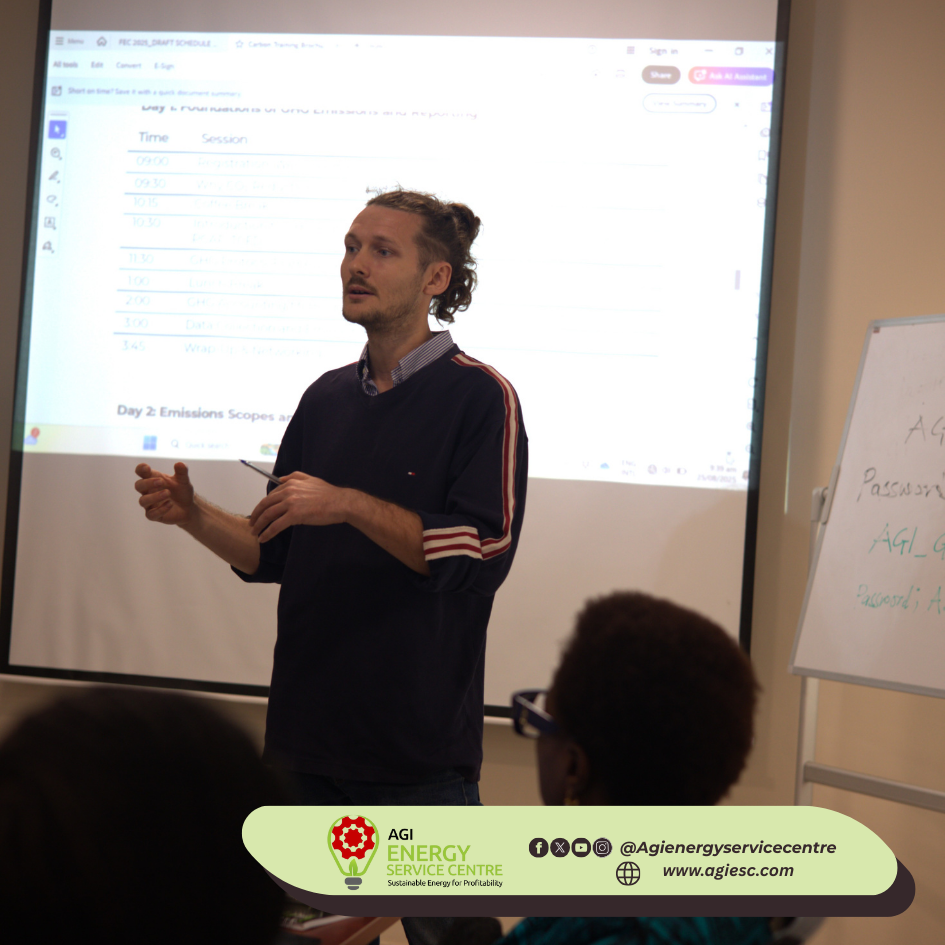 The GHG Accounting & Decarbonisation Training, organised by the AGI Energy Service Centre in partnership with Swisscontact, brought together industry leaders, sustainability managers, consultants, and policymakers to build capacity in carbon accounting and climate action.This training equipped participants with practical skills to: